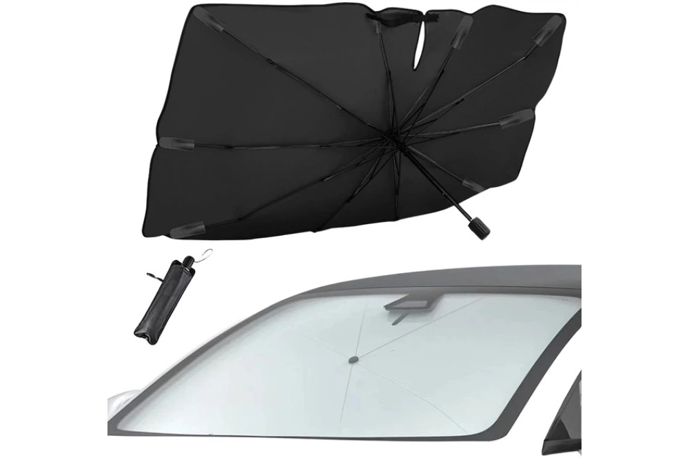 Эффективная защита от зноя: Зонт отражает солнечные лучи, предотвращая перегрев салона автомобиля и защищая приборную панель от выцветания.
