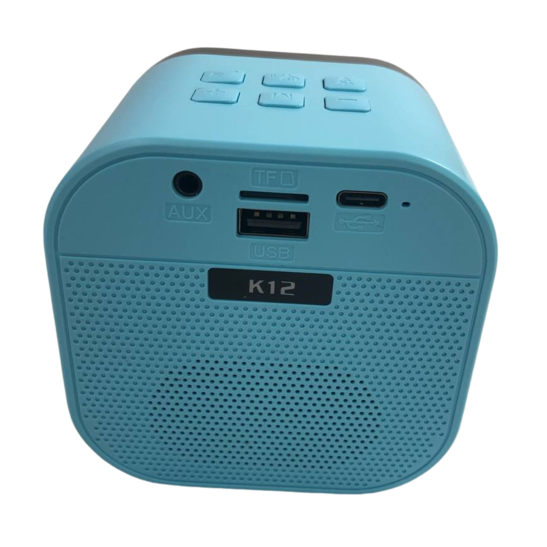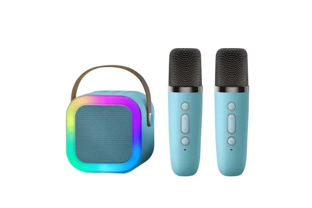 Детское беспроводное караоке K-12 Bluetooth колонка + 2 микрофона RGB подсветка голубой