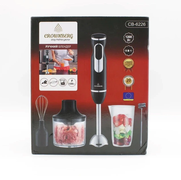 Блендер Crownberg-Cb-6226 5 в 1 миксер, измельчитель со стаканом черный незаменимый помощник на кухне с помощью которого готовка становится быстрой и удобной.