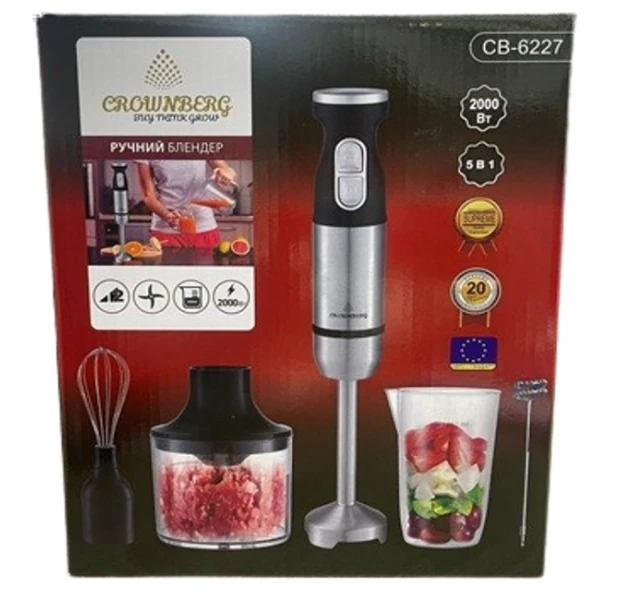 Блендер Crownberg-Cb-6227 5 в 1 миксер, измельчитель со стаканом черный