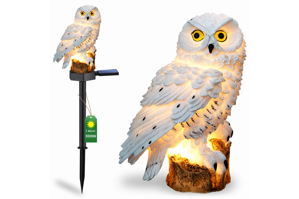 Выглядит красиво и очень реалистично. Белая сова с большими глазами и словно настоящим белым оперением приковывает восхищенные взгляды днем и ночью. Для всех, кто ищет что-то оригинальное для декора сада, стоит купить газонный светильник в виде фигурки совы. Возгораясь с наступлением темноты, он будет создавать сказочный эффект и привносить нотки магии и романтики в обстановку. Бесперебойно работает в любую погоду! Легко переноситься.