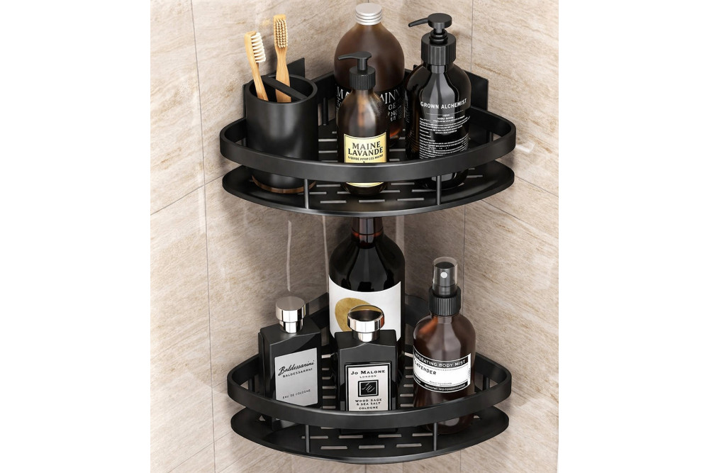 Настенная угловая полка - органайзер Nook bathroom shelf 2шт. для ванной комнаты душевой кабины, кухни, на самоклеющейся пленке чёрный