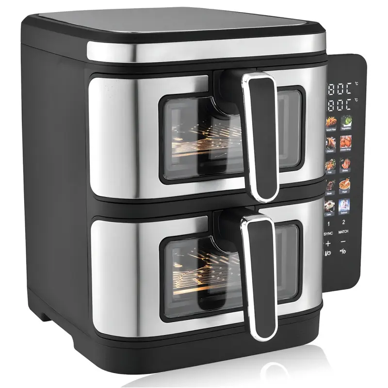 Мощная аэрофритюрница с двумя чашами и рекордной мощностью 4800 Вт – это новое слово в здоровом питании. Благодаря объему 15 литров и технологии объемного нагрева вы можете готовить большие порции блюд без использования масла, сохраняя максимум витаминов и естественный вкус продуктов.