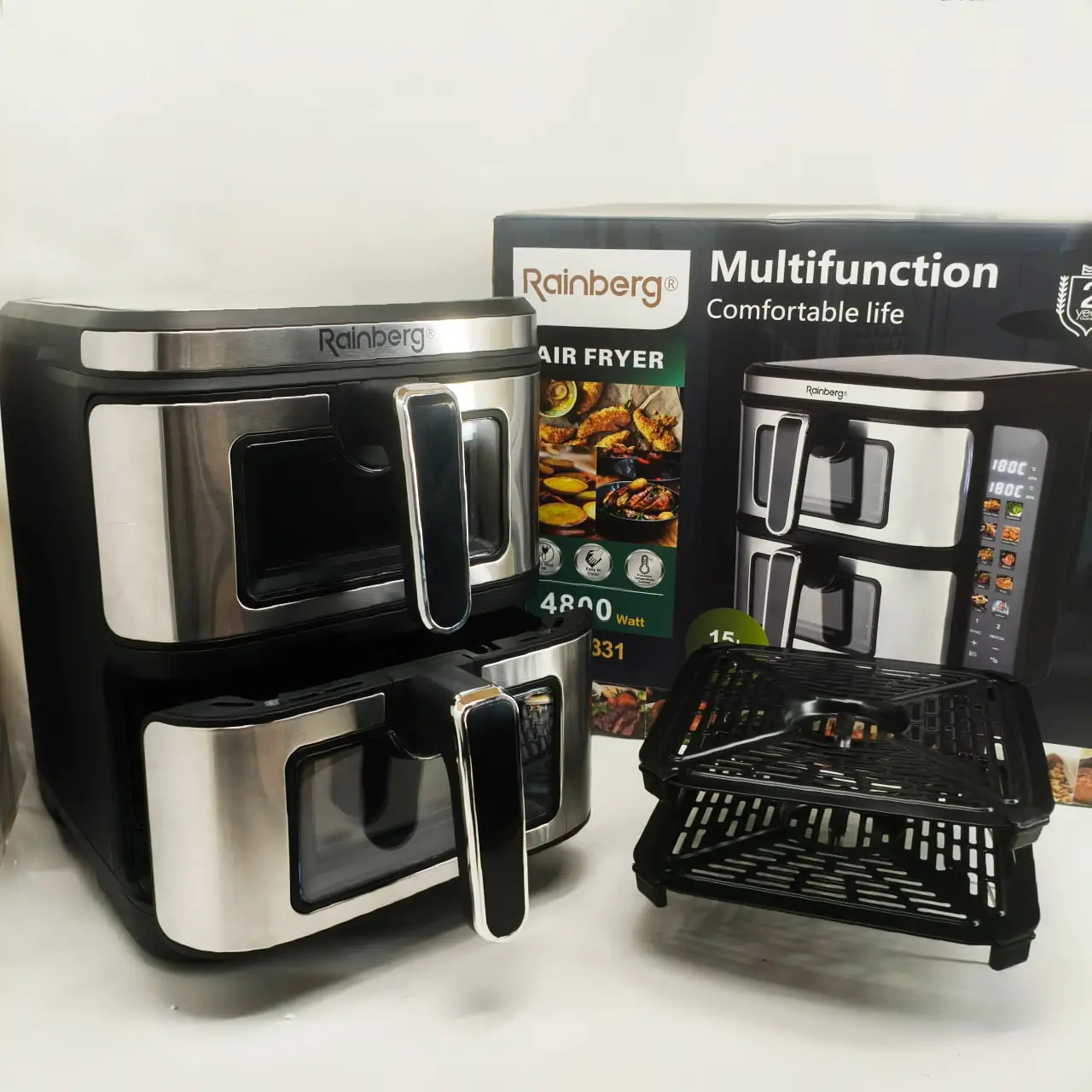 Аэрофритюрница-мультипечь Rainberg на 15 л: Профессиональный аэрогриль 4800 Вт.Мощная аэрофритюрница с двумя чашами и рекордной мощностью 4800 Вт – это новое слово в здоровом питании. Благодаря объему 15 литров и технологии объемного нагрева вы можете готовить большие порции блюд без использования масла, сохраняя максимум витаминов и естественный вкус продуктов. Главные особенности модели:Инн... Все описание