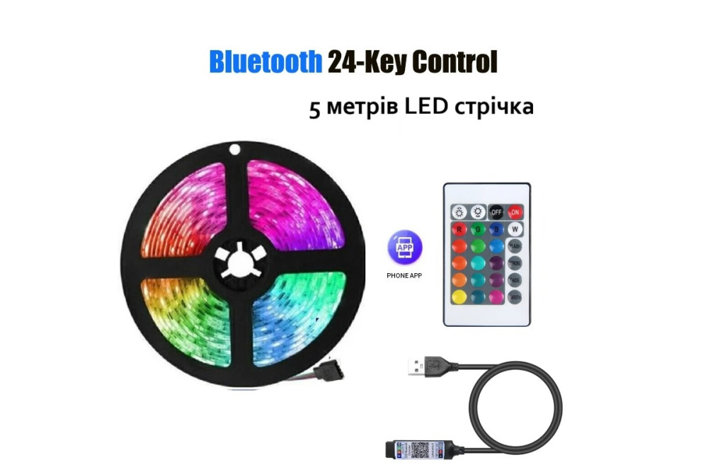 Светодиодная LED лента RGB 5050 5 метров от USB + пульт ДУ