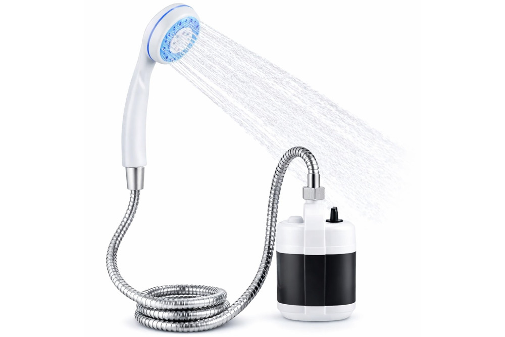 Производный переносной душ Portable Outdoor Shower с аккумулятором и зарядкой от USB пригодится на даче или в путешествии, теперь вам не нужна шланг дешевая воронка, поскольку имеет небольшие размеры и является переносным. Для душевой системы вам понадобится емкость с водой, в которую нужно поместить насос душевого оборудования и включить питание, шланг для душа нержавеющий. Мощный литиево-ионный аккумулятор обеспечивает 2 часа после полной зарядки. Зарядить батарею можно через USB – просто подключите