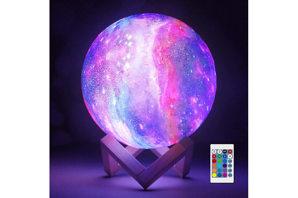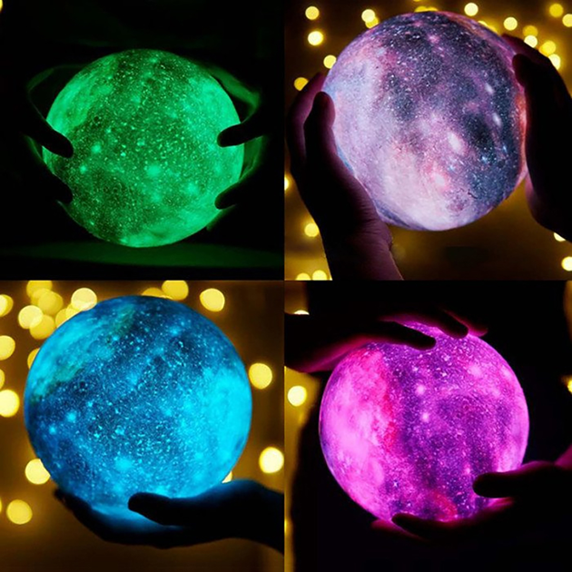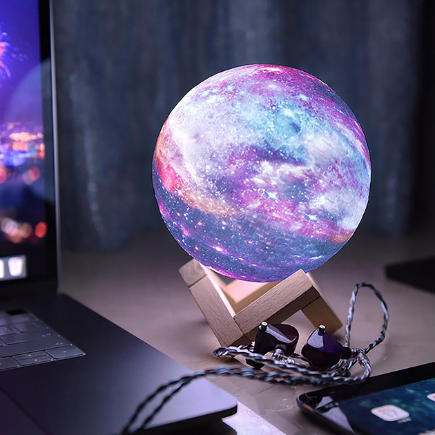 Настільний LED Нічник Galaxy Magic 3D RGB moon light з пультом д/в та акумулятором від виробника виготовлений за допомогою інноваційної технології 3D-друку. Текстура корпусу нагадує безкраї простори космосу і виглядає дуже красиво. М'яке світло рівномірно і плавно розсіюється по кімнаті, дає відчуття затишку та тепла.