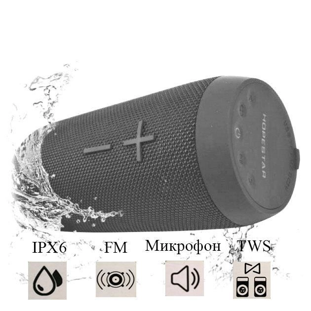 Hopestar P7 має потужний широкосмуговий динамік і пасивний низькочастотний випромінювач, що значно посилює баси, роблячи звук більш чітким і реалістичним. Вбудований мікрофон дозволяє використовувати акустичну систему як гарнітуру гучного зв'язку для смартфона. Високоміцний пластиковий корпус захищає колонку від ударів та наслідків при падінні. Місткості вбудованого акумулятора вистачає на 3,5 години прослуховування музики. Аксесуар підключається до джерела звуку через bluetooth або стандартний роз'єм 3,5 мм. На бічній панелі колонки розташовані: входи AUX - з роз'ємом 3,5 мм, USB, micro-USB для заряджання колонки, роз'єм для картки пам'яті. Технологія стандарту IPX6, яка застосовується при складанні пристрою, дозволяє захистити його від контактів із водою. Портативна колонка Hopestar P7 - це аксесуар, що зберігає баланс між доступною ціною і відмінною якістю. В Hopestar P7 USB роз'єм використовується для відтворення з флешок, microUSB - для зарядки колонки і як вхід для FM антени, антеною служить комплектний кабель USB-microUSB. Колонка має відмінний захист від вологи, не боїться дощу, тому відмінно підходить для використання просто неба. Чудовий варіант для подарунка!