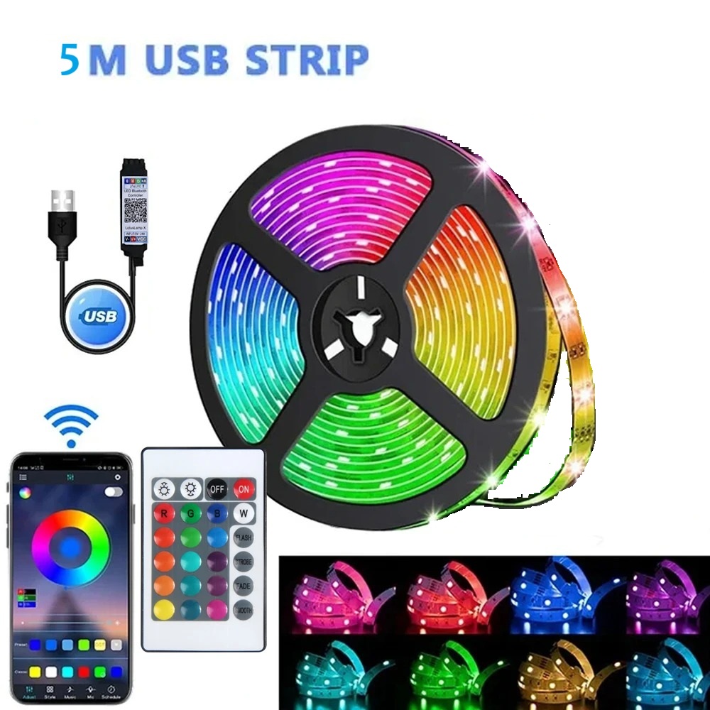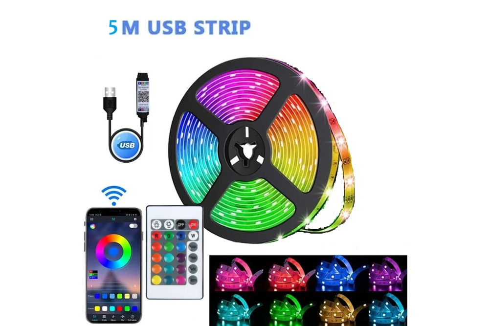 Світлодіодна LED стрічка RGB 5050 5 метрів з Bluetooth-додатком від USB + пульт ДК