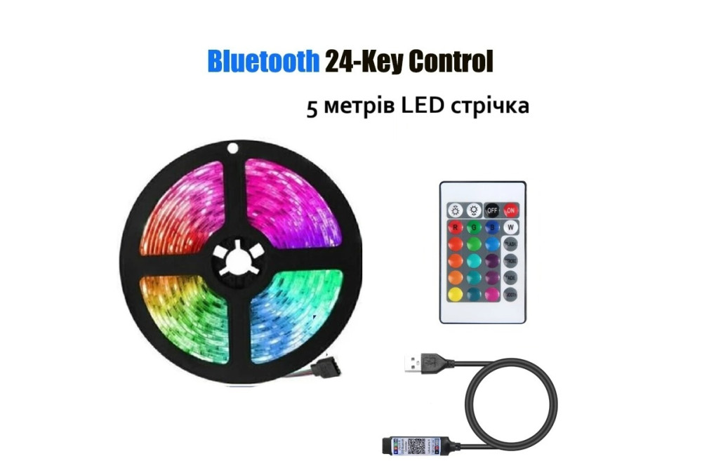 Світлодіодна LED стрічка RGB 5050 5 метрів від USB + пульт ДК